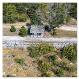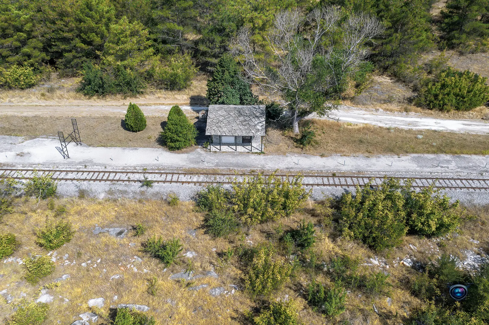 Στις γραμμές του τρένου και στην αρχή του δασυλλίου διακρίνεται ένα σπιτάκι. Αυτό είναι η Σιδηροδρομική Στάση του Σπηλαίου Αλιστράτης η οποία έχει καταργηθεί εδώ και χρόνια. Εκεί κατέβαιναν οι επισκέπτες και σε μόλις 120 μέτρα βρισκόντουσαν στα σπήλαια.