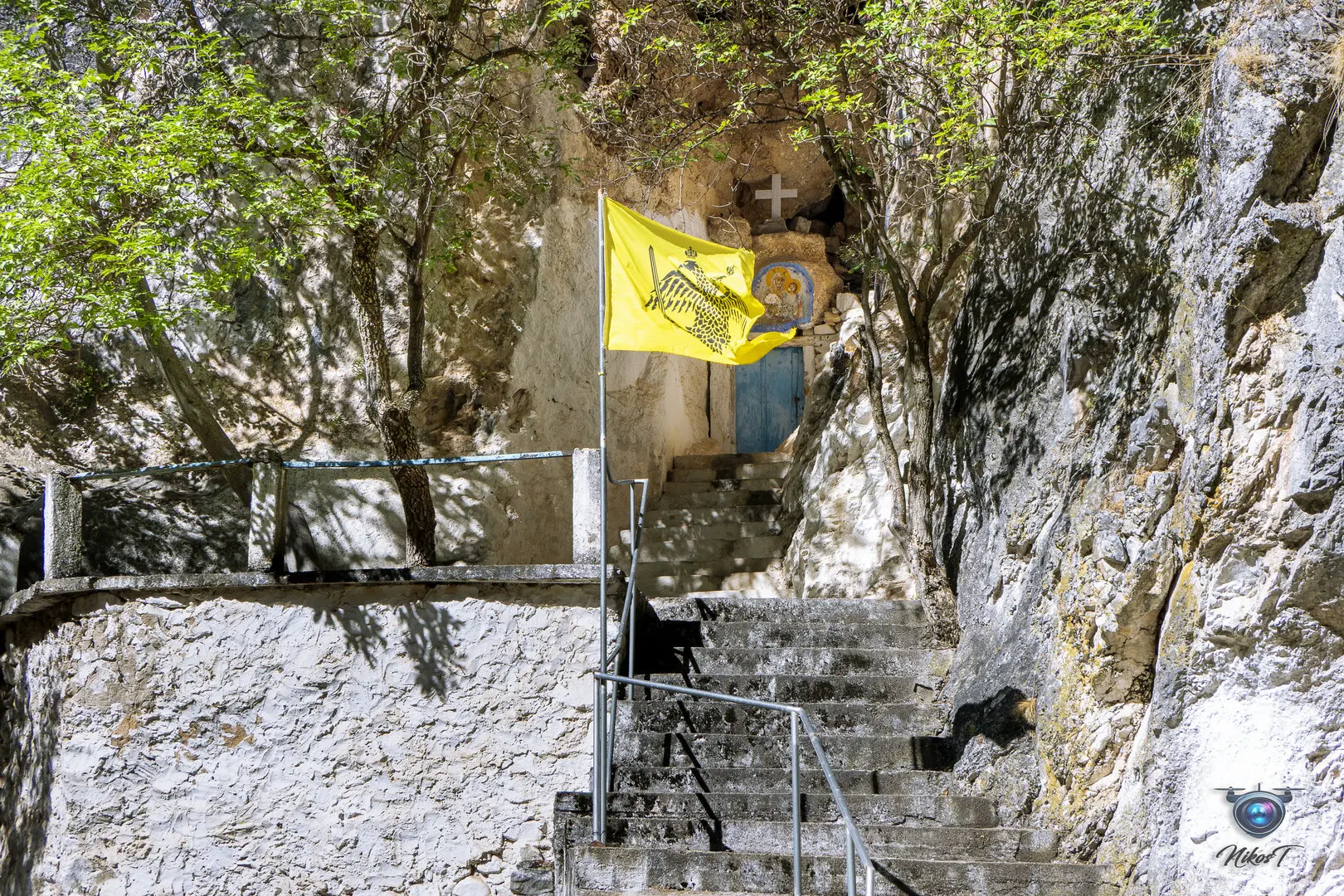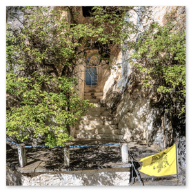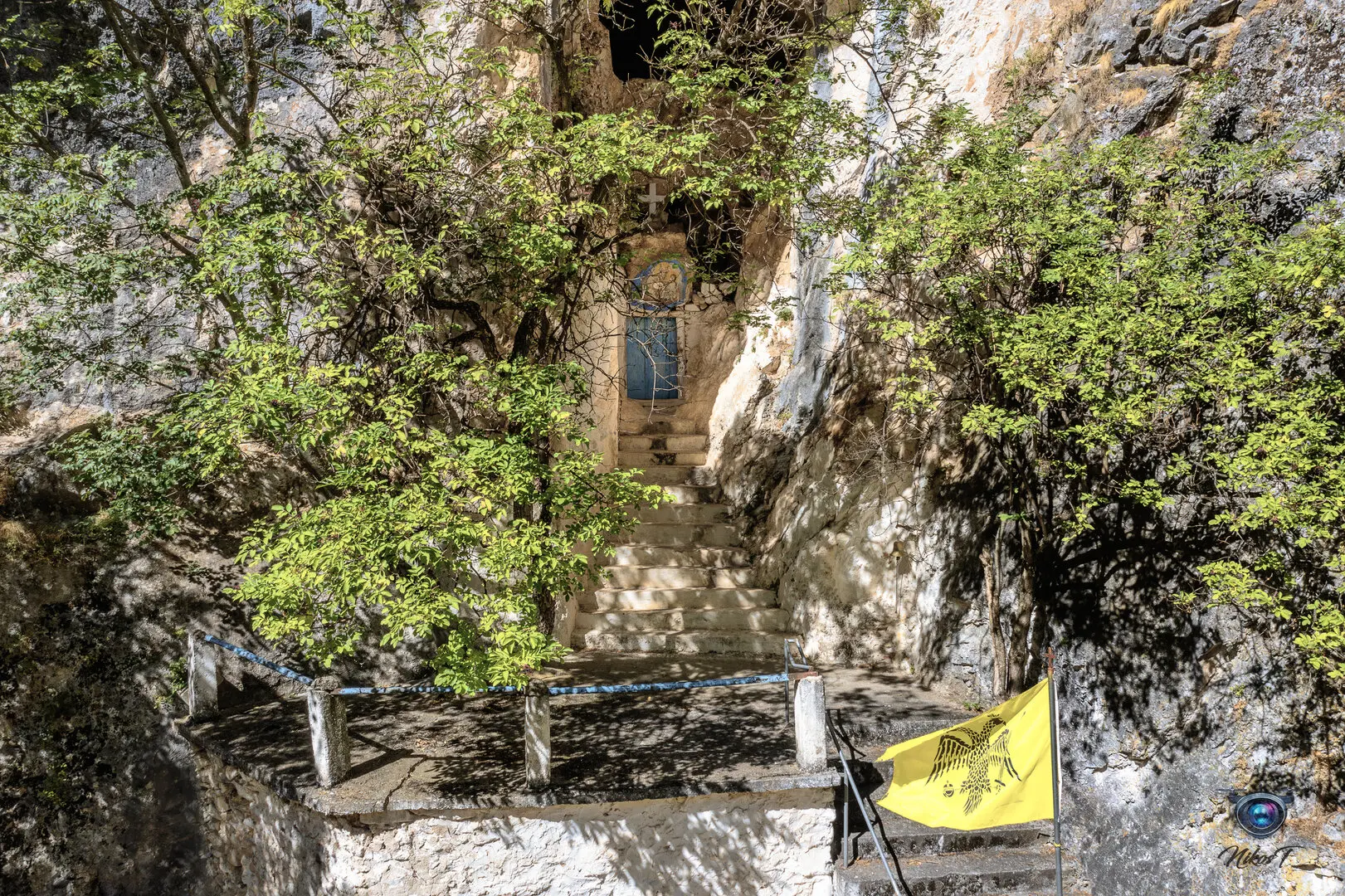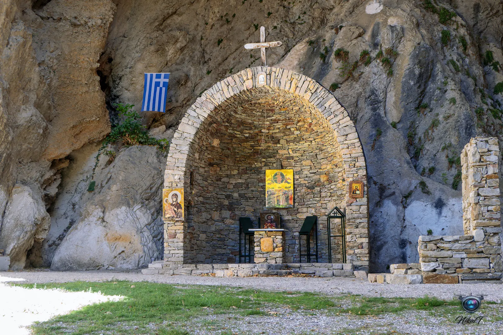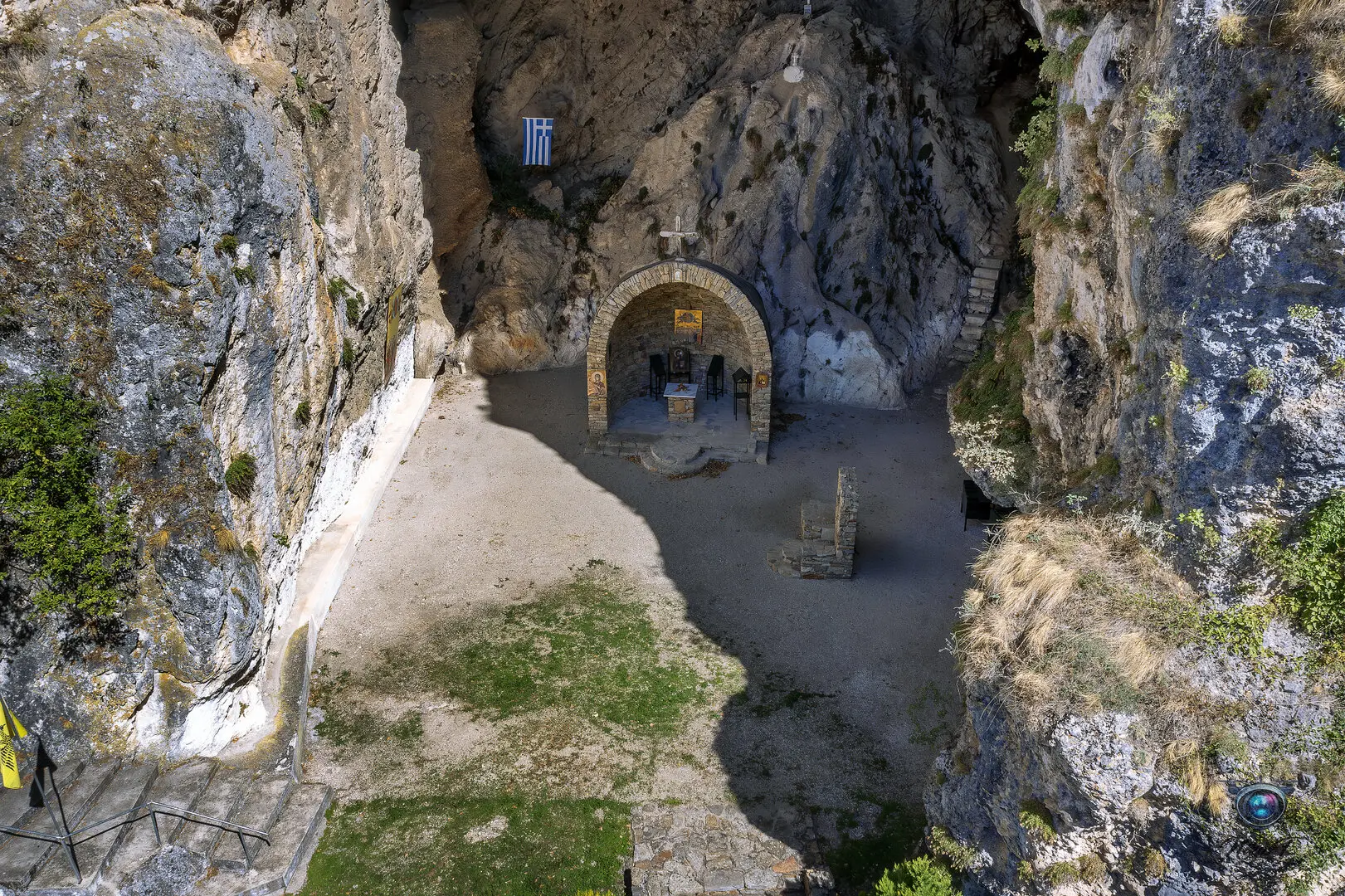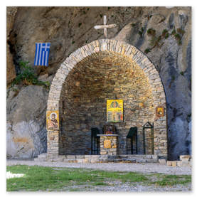 Το ξωκλήσι "φωλιάζει" στο βράχο, και πάνω από την