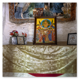 ποιότητας τοιχογραφία στην αγία τράπεζα. Στα πλαϊνά υπάρχουν αλλοιωμένες