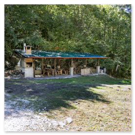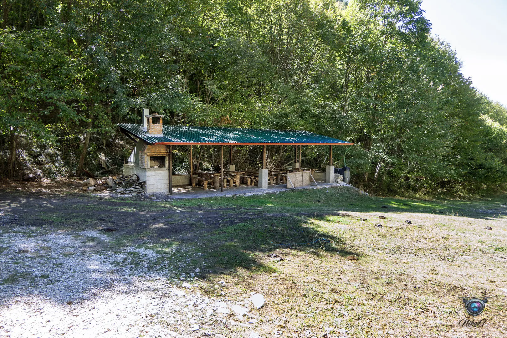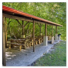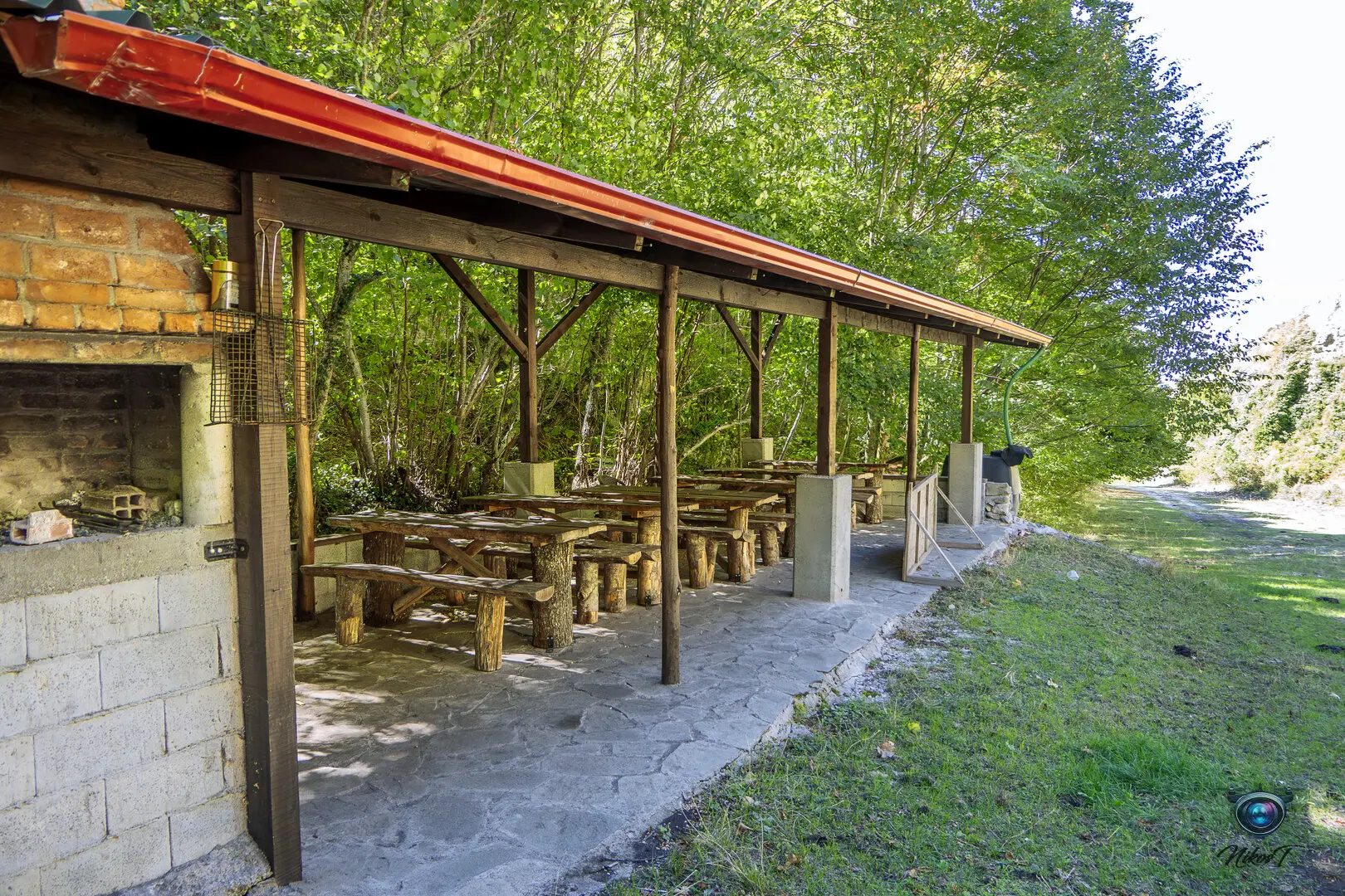 ένα μεγάλο κιόσκι με ψησταριά τραπέζια και άλλα αναγκαία για την εξυπηρέτηση