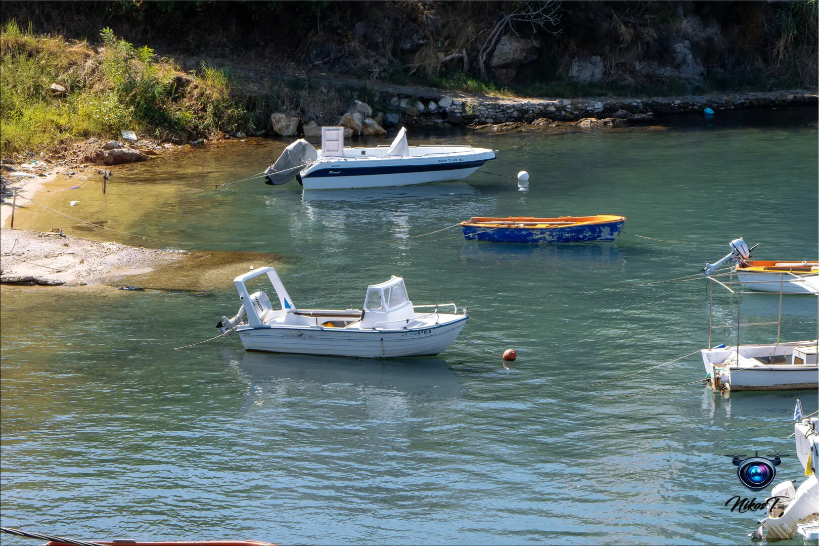 άρχιζε η διώρυγα. Εκεί διακρίνονται αρχαίοι τοίχοι μέσα στη θάλασσα.