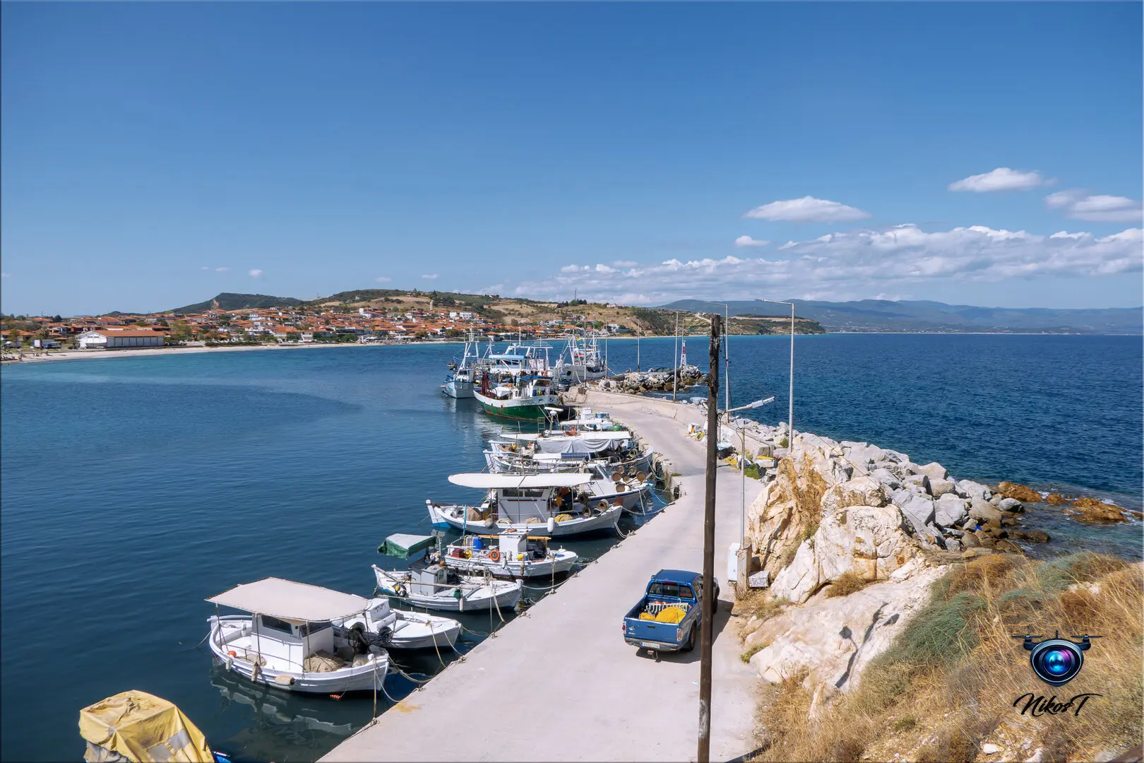 Βρίσκεται στο στενότερο σημείο της χερσονήσου του Άθω και