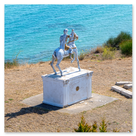 Στο ύψωμα πάνω από την παραλία έχει τοποθετηθεί ένα άγαλμα