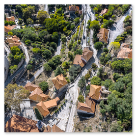 σπίτια χτισμένα από πέτρα, κεραμοσκεπές και λιθόστρωτα μονοπάτια που διατρέχουν