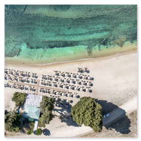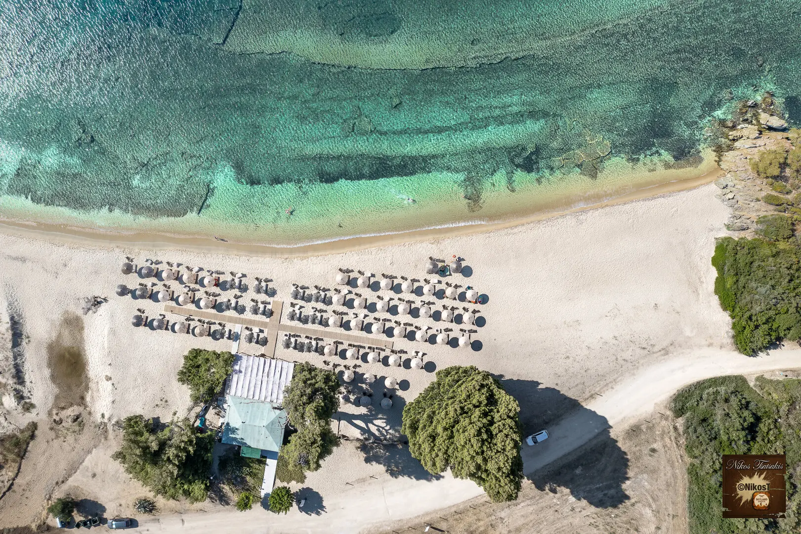 υπάρχει το beach bar, αλλά και αρκετός χώρος για να βάλετε τη δική σας ομπρέλα και
