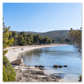 με ψιλό βοτσαλάκι και γαλαζοπράσινα νερά. Ένα ιδιαίτερο χαρακτηριστικό της, που