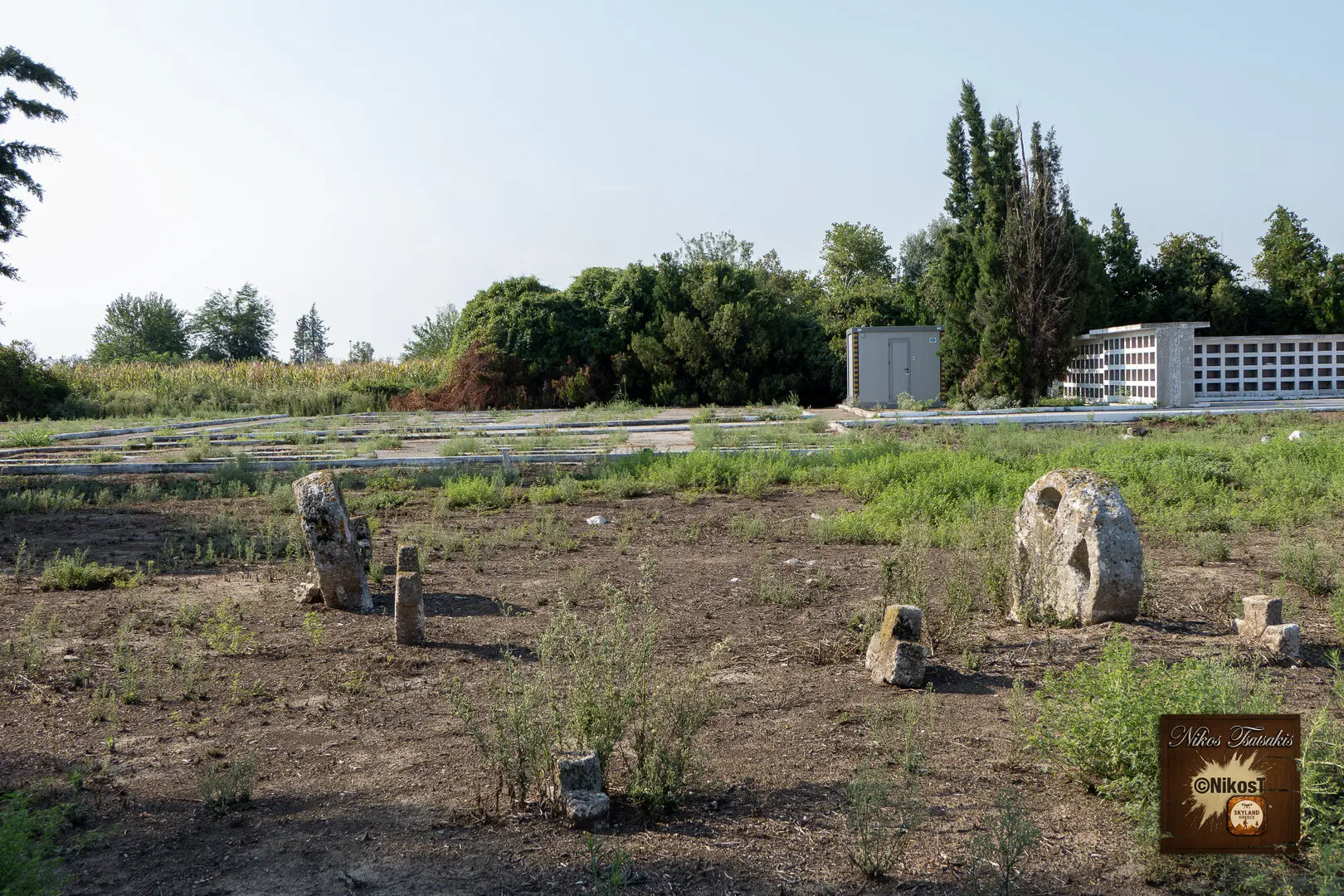 ⚪Η μεγαλύτερη στήλη φτάνει τα δύο μέτρα ύψος και έχει εντυπωσιακό πάχος, ξεπερνώντας τη μία σπιθαμή. Τα λιτά αλλά επιβλητικά αυτά μνημεία αποπνέουν μια αυστηρή πνευματικότητα και διαφοροποιούνται έντονα από την ορθόδοξη ταφική παράδοση.