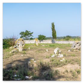 ⚪Μέσα σε αυτό το ιστορικό τοπίο αποκαλύπτεται ένα μοναδικό μεσαιωνικό νεκροταφείο: το Νεκροταφείο των Βογόμιλων, το μοναδικό γνωστό δείγμα αυτού του είδους στον ελλαδικό χώρο.