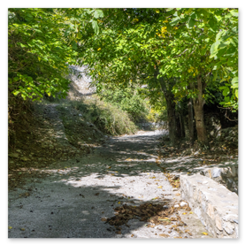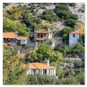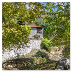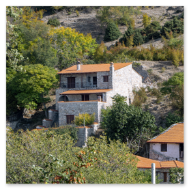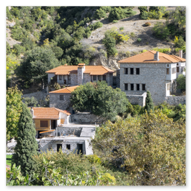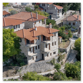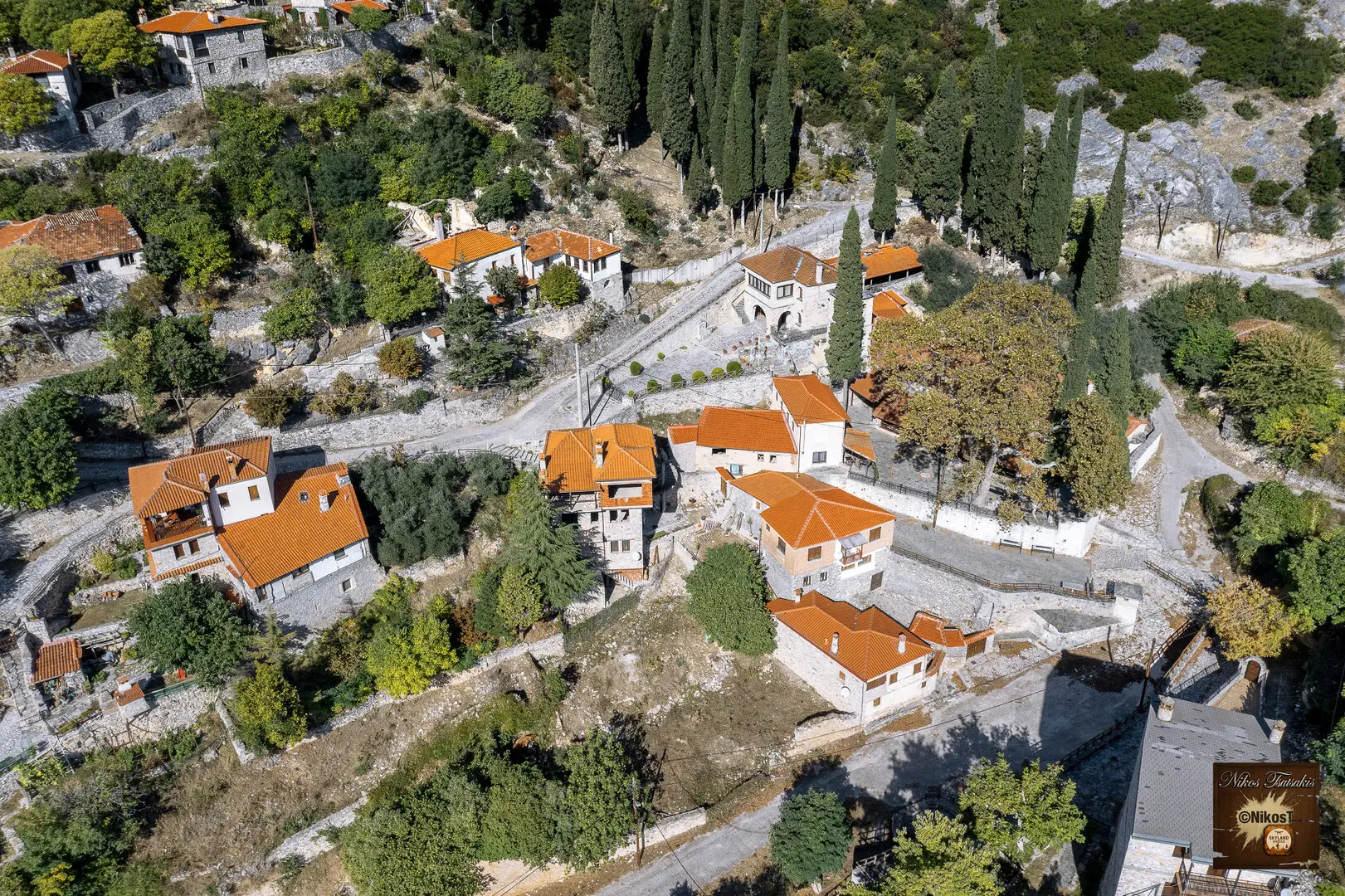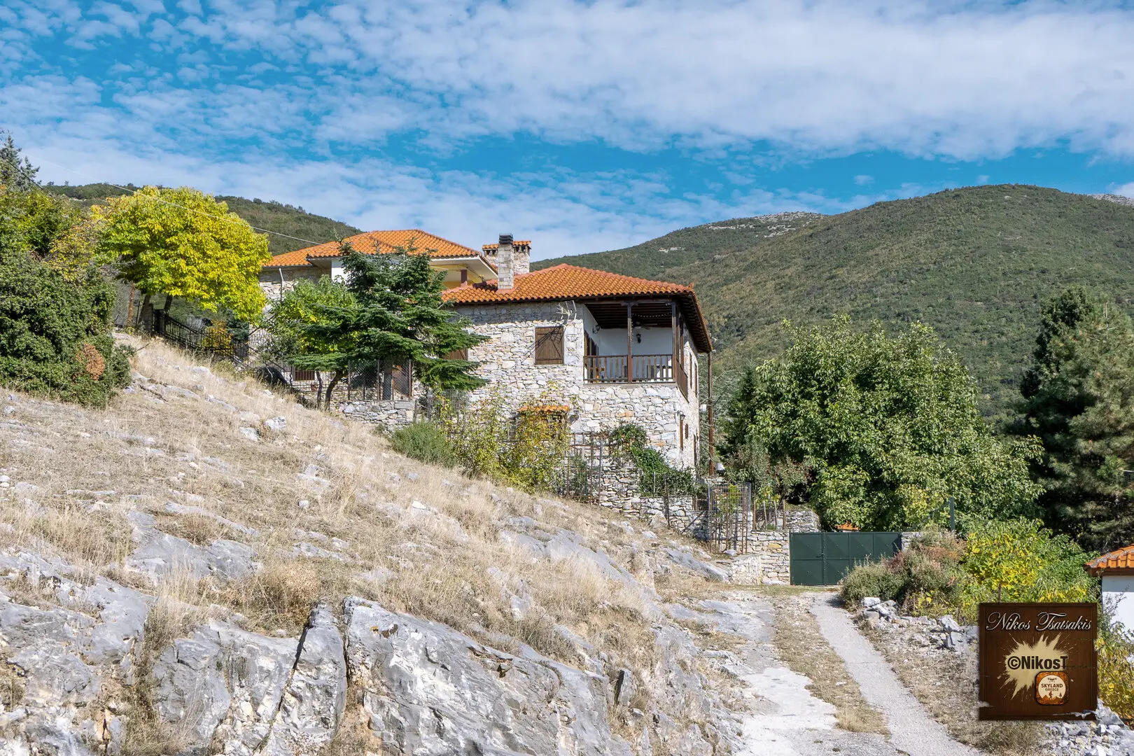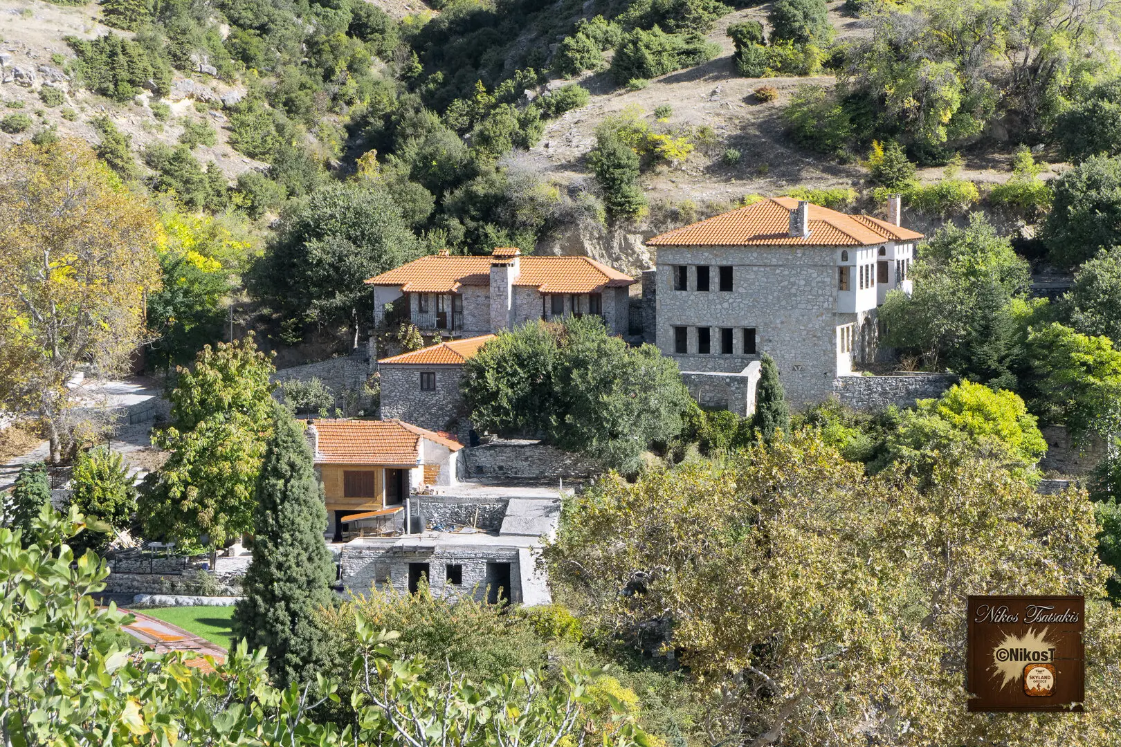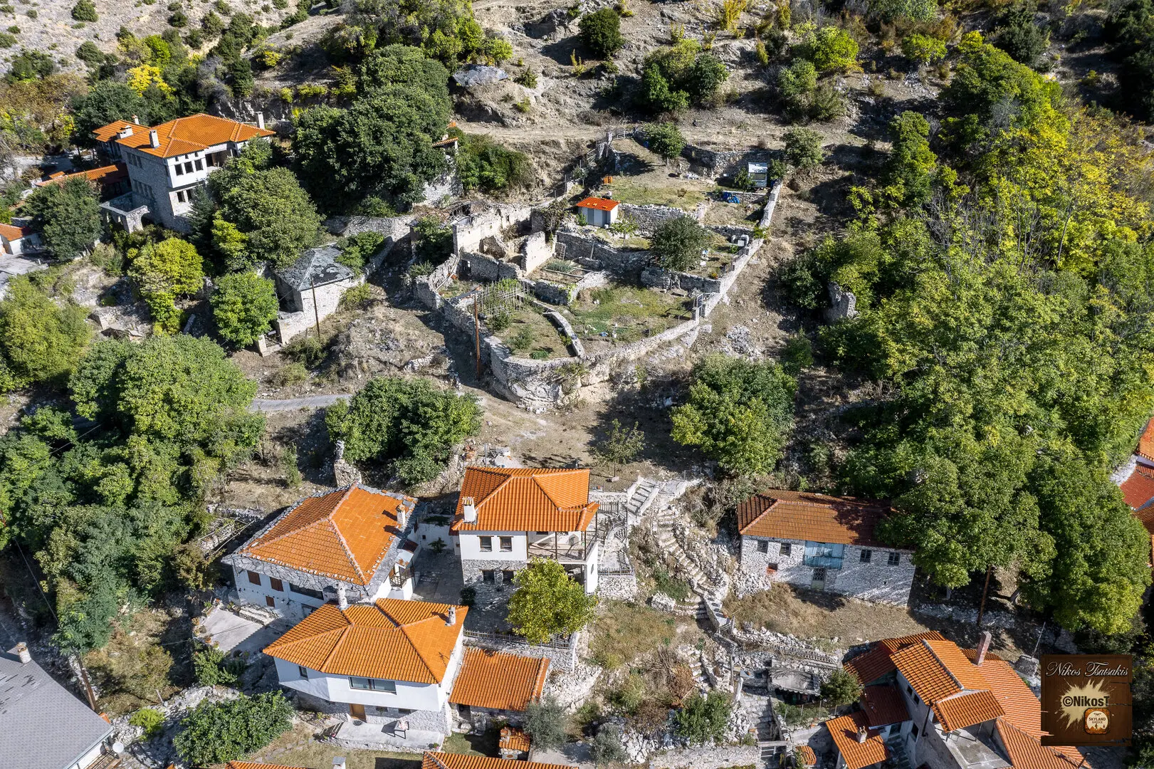 σπίτια χτισμένα από πέτρα, κεραμοσκεπές και λιθόστρωτα μονοπάτια που διατρέχουν